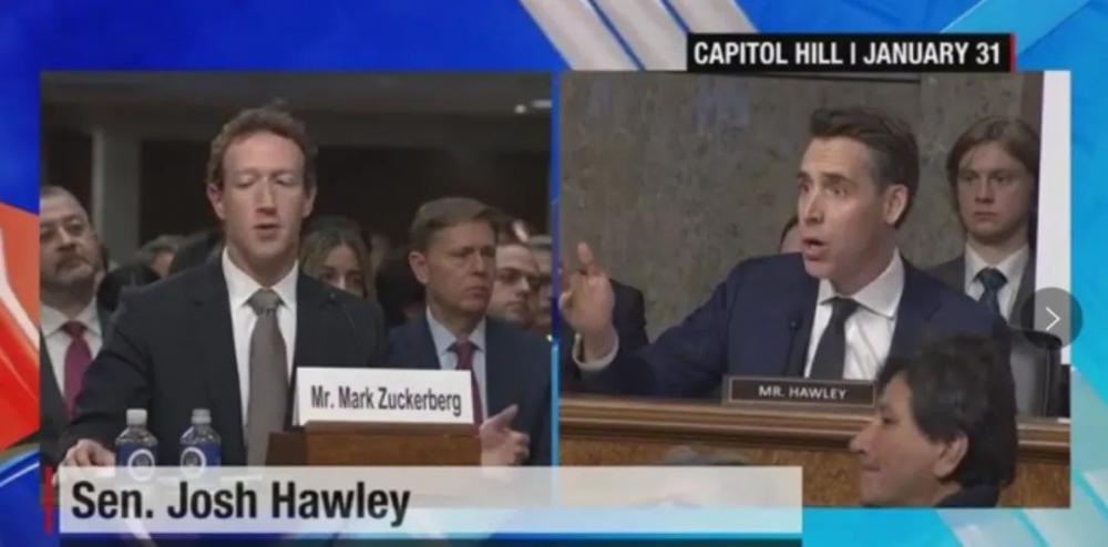 共和黨籍參議員喬希?霍利要求扎克伯格向受害兒童家屬道歉,圖自美媒