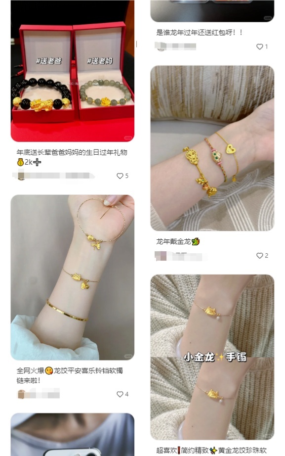 最近幾天,黃金的熱度更甚,在社交平臺(tái)上關(guān)于龍年金飾品的討論也是十分熱烈。