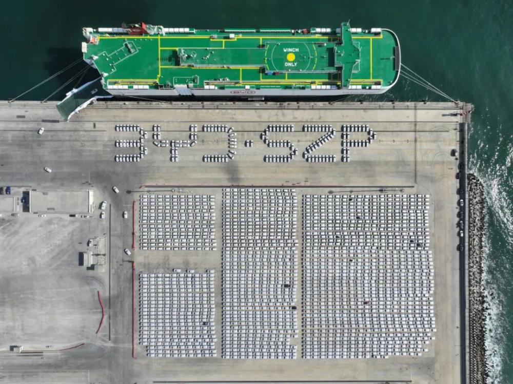 新年伊始,一艘名為“比亞迪探索者1號(hào)”(BYD EXPLORER No.1)的運(yùn)輸船在山東煙臺(tái)龍口交付離港,1月16日上午,裝載5449臺(tái)比亞迪新能源車的該船緩緩駛出深汕小漠國(guó)際物流港,首航啟程前往歐洲。