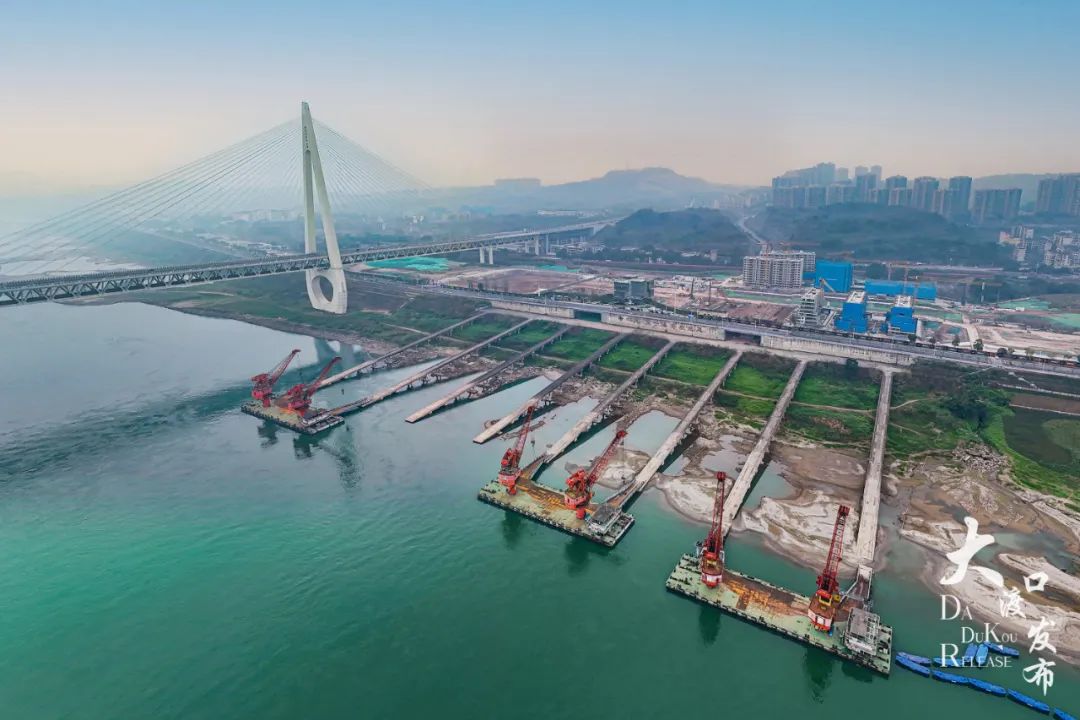 1月31日,茄子溪·長江音悅港(重慶西岸項目)施工現場塔吊林立,機械轟鳴,工程車往來穿梭,現場一派繁忙景象。