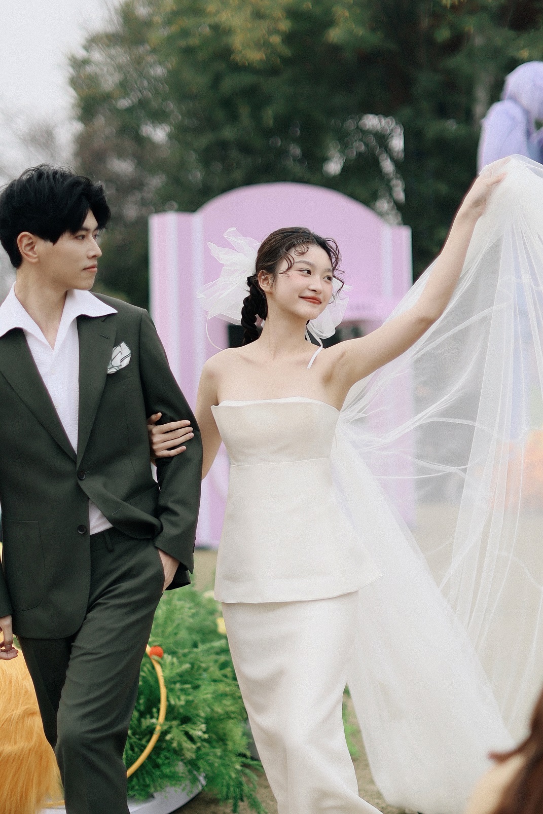 現(xiàn)場(chǎng)多家媒體朋友及眾多備婚新人受邀出席,司儀攜毛孩子伴郎一同上臺(tái),在眾人的歡呼慶祝下,以一場(chǎng)可愛(ài)爆棚的“狗狗婚禮儀式”拉開此次婚禮秀的帷幕。陽(yáng)光肆意揮灑,酒店草坪上,伴著歡快的音樂(lè),身著OUI Bridal高級(jí)定制婚紗的模特們,靈動(dòng)活潑如樂(lè)符般跳躍在由色彩構(gòu)建的開闊空間里,展現(xiàn)了西式婚紗的純潔細(xì)膩。更加彰顯出美利亞酒店品牌的松弛生活態(tài)度,對(duì)一切萬(wàn)物的無(wú)限包容。得天獨(dú)厚的自然環(huán)境,映著湖光山色的波瀾光影