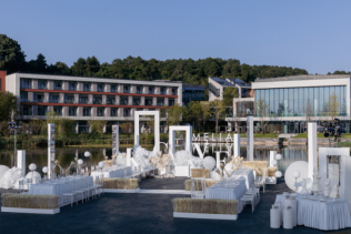 聯(lián)合共12家高品質(zhì)婚禮關(guān)聯(lián)品牌雅致傾呈,以戶外秀的輕松方式,展現(xiàn)酒店以開放姿態(tài),擁抱愛(ài)與寵溺。如精靈般跳躍的色彩,將現(xiàn)場(chǎng)編織成一個(gè)五彩繽紛的浪漫夢(mèng)境,多巴胺配色營(yíng)造出活潑氛圍,讓人置身童話世界,浪漫又甜蜜。