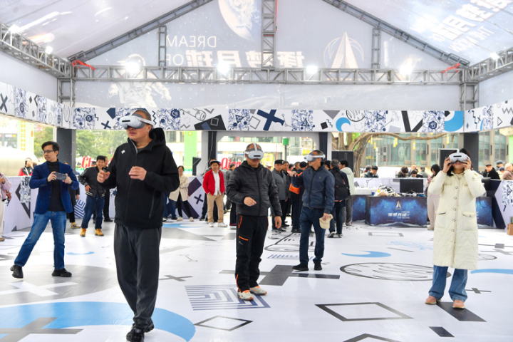 記者了解到,作為本次活動科技亮點,AI沉浸式作品——“逐夢月球”VR沉浸式體驗在活動中正式首發(fā)。25分鐘的“登陸月球”VR體驗讓參與者仿佛置身于月球表面,沉浸式感受航天探索的魅力。