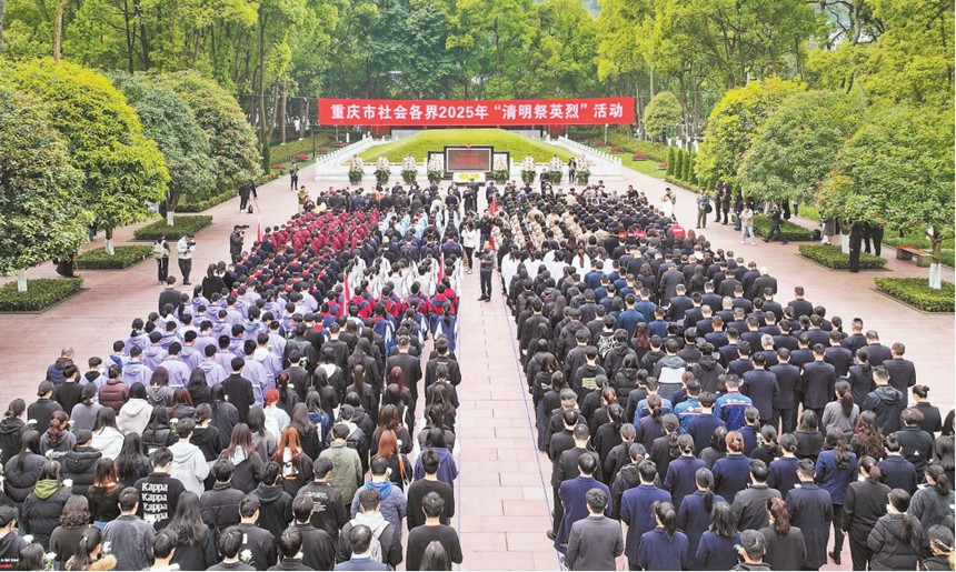 ▲2025年4月2日,巴南區南泉革命烈士陵園,舉辦“賡續紅色血脈 弘揚紅巖精神”——重慶城市精神宣傳暨巴南區大中小學清明祭英烈大思政課實踐活動。通訊員 李攀 攝