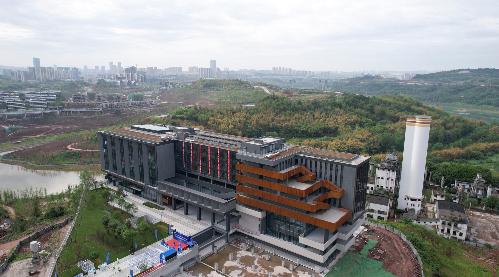 據悉,四川美術學院悅來校區位于重慶兩江新區水土組團E分區,坐落于嘉陵江畔。設計理念是從兩江新區整體城區格局和周邊規劃條件出發,打造一座與城市共生共榮的校園、一座融合山水的校園、一座產教融合的校園、一座宜學宜居的校園。項目的實施,將進一步豐富城市的文脈,展示城市的藝術魅力,持續為兩江新區注入新的活力,讓周邊群眾能夠在文化藝術的熏陶下更加享受生活,讓更多優秀的藝術人才聚集兩江新區,推進兩江新區文化藝術的新高地的建設。項目按照“統一規劃、分步實施”的原則進行建設,預計在校生規模2000人。其中一期項目總建筑面積57611.51平方米,總規劃用地面積17237.3平方米,重點包括實驗中心、地下車庫等。目前項目正處于收尾階段。