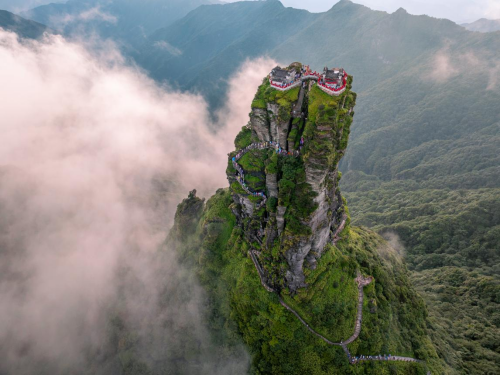 春季雨水充沛,也是在梵凈山觀(guān)賞云海的最佳時(shí)節(jié)。站在標(biāo)志性景點(diǎn)蘑菇石旁,看云霧如輕紗般纏繞紅云金頂,仿佛置身仙境。