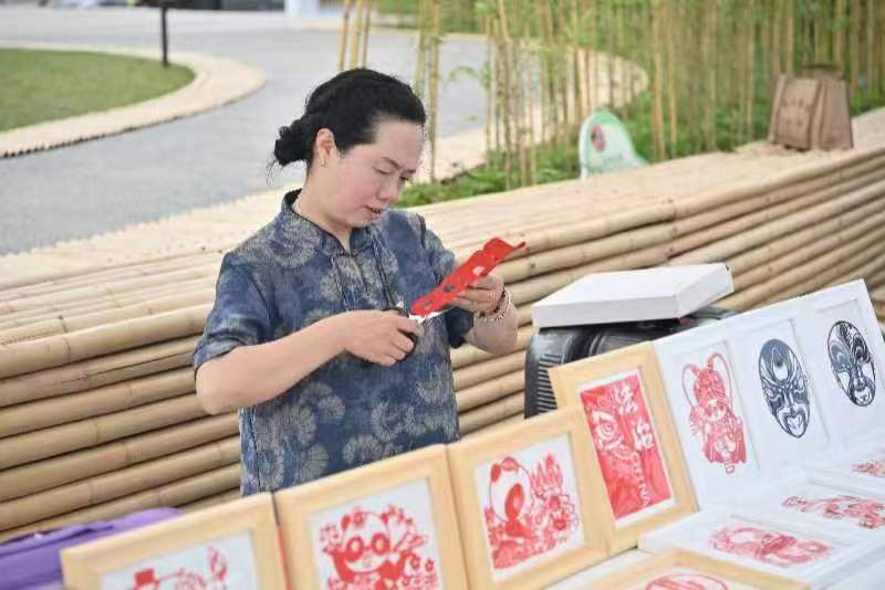 同時(shí),展區(qū)還特設(shè)了非遺展示區(qū),剪紙、繩編、內(nèi)畫鼻煙壺、燈謎等新津非遺文化,讓游客在欣賞精美作品的同時(shí),也能近距離感受傳統(tǒng)文化的魅力。