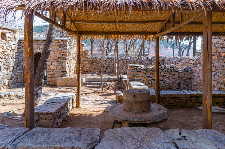 磨坊建在寨子古老的炮樓里,背靠寨墻,墻體下半截青石、上半截土木,有規則地分布著一些內大外小的窗子和射擊孔。一樓是生產加工車間,二樓三樓是保管室,除了老掉牙的手搖壓面機外,再也找不到半點機械化的影子。磨坊外有一塊全寨子最大的地壩,除了孩童嬉戲的笑聲外,偶爾還有大人提著麥子兌換面粉面條的身影。