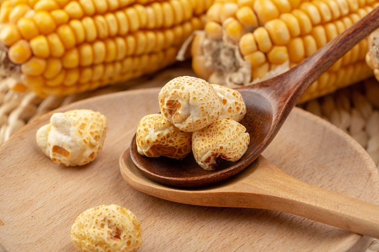 倒在升子(木制器皿)的包谷泡,那一粒粒鮮花式的包谷泡在升子里恣意地盛開著,有的像八字,有的像葫蘆,有的像菊花,還有的像小熊貓。抓一把嚼在嘴里,香噴噴的、甜滋滋的、脆酥酥的……無比香甜直漾心底。